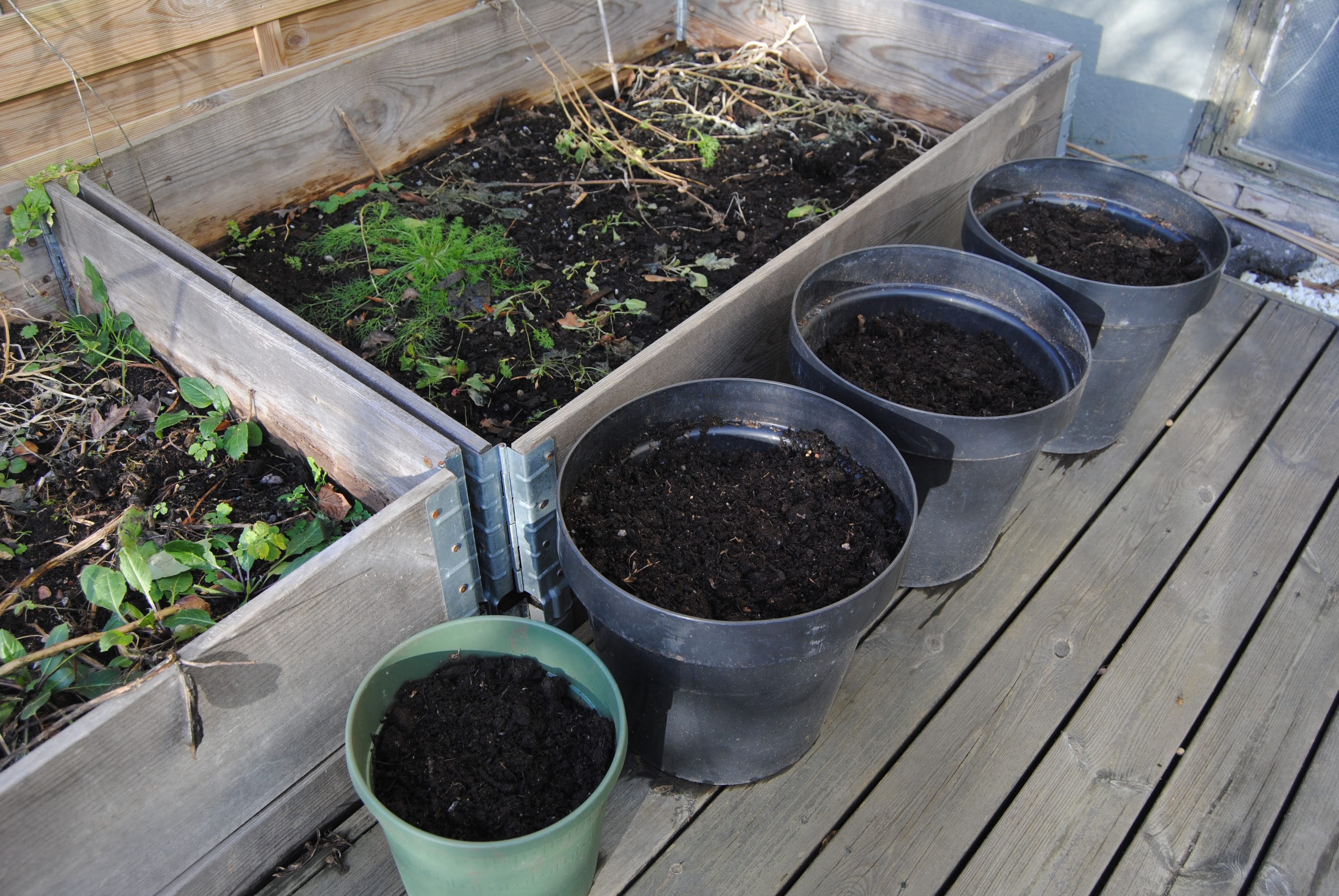 Utomhus har jag även tagit ett steg framåt. Jag hade lökar av krokus och scilla som jag inte hade fått ner i jorden innan tjälen kom. Istället för att ”glömma bort” dem igen så tinade jag lite jord och satte ner lökarna i krukor istället. Förhoppningsvis kan jag få en tidigare blomning där i förhållande till de lökar som faktiskt kom ner i gräsmattan.
