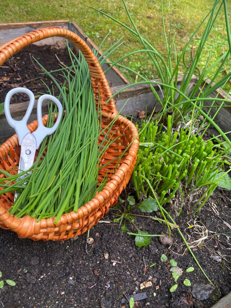 - Plocka gräslök! Jag tog typ 100 gram men det är inte så noga.