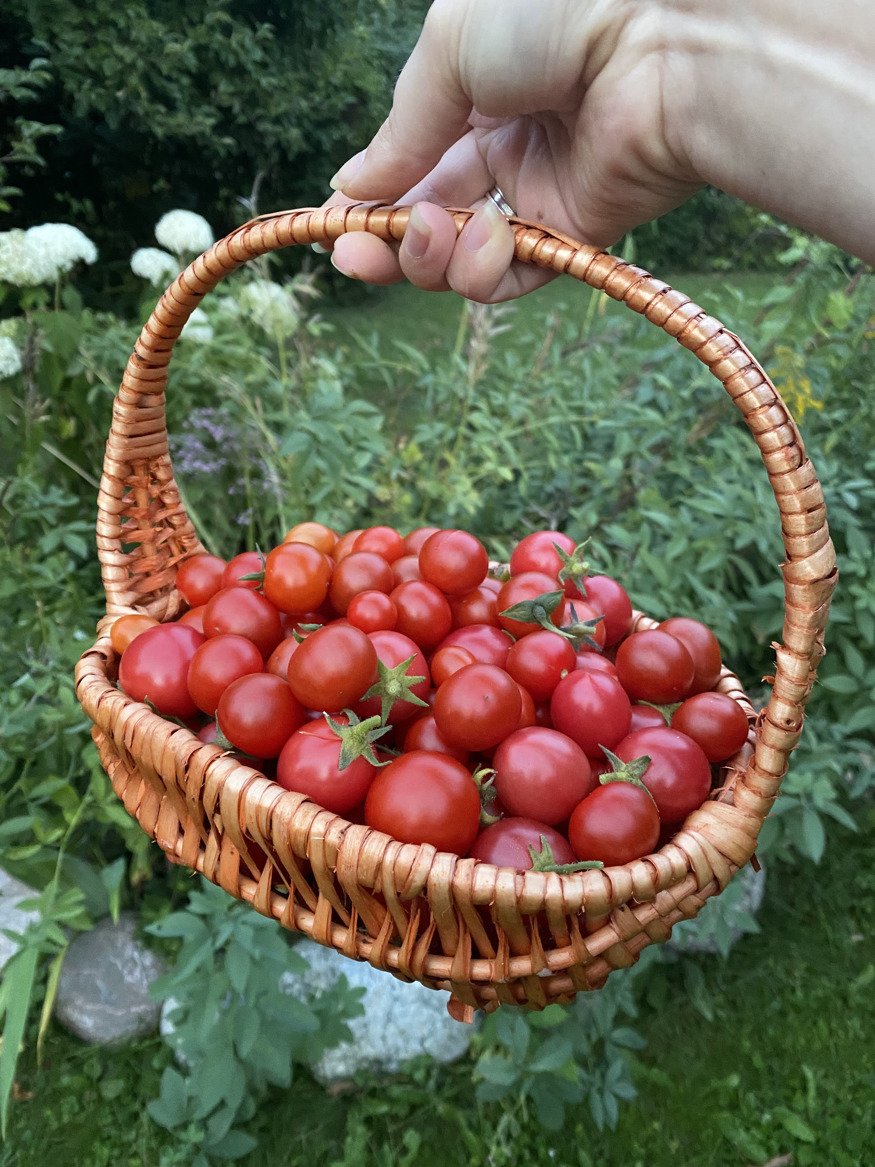 Förra året levererade busk- och ampeltomaterna bäst och jag fick massor av små goda röda körsbärstomater. Det var sorten Gartenperle som fick absolut flest frukter så den sorten ska få vara med även i år.