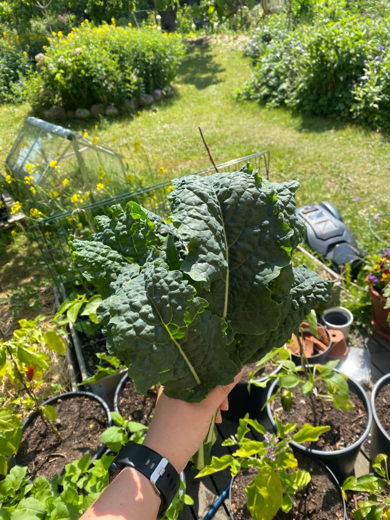 Det är absolut mycket jobb med att plantera ut alla växter och sen sköta dem så att man får någon skörd. Men oj, oj, oj vad jag har kunnat skörda i juni! Jag har kunnat skörda ovanligt mycket under hela året och det kan ni läsa om HÄR. I juni har jag kunnat skörda sammanlagt 1832 gram mat! Förra året i juni kunde jag skörda 277 gram så jag har definitivt kunnat skörda mer i år. Det som har producerat mest den här månaden är bladkålen som jag planterade i april och den har gett mig 508 gram färska blad till både sallad och grönkålschips!